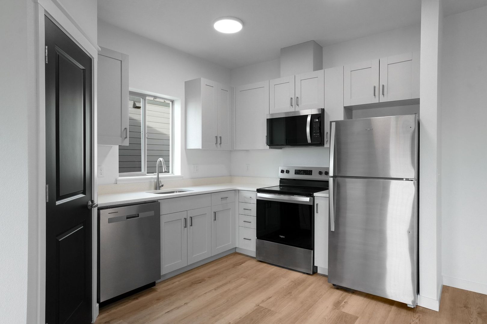 All Kitchens include new appliances, Corian counter tops and wood plank vinyl flooring.